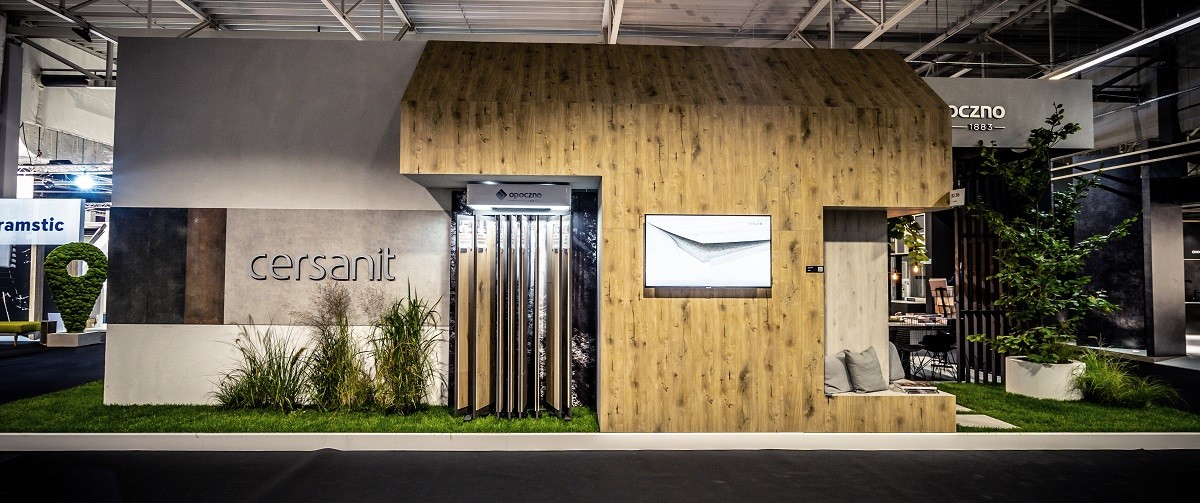 „Inspiracją dla mojego stoiska były proste, nowoczesne bryły domów podmiejskich ze strefą zieleni przydomowej. Przestrzeń ekspozycji została podzielona na kilka stref. Jedna z nich nawiązywała do hasła kampanii Cersanit „Łazienki polecane przez życie” – dlatego pokazaliśmy łazienki skierowane do różnych odbiorców, o różnych wymaganiach. Nie chciałam, aby stoisko było zwykłą ekspozycją produktową, najważniejsze było stworzenie klimatu i odpowiedniej atmosfery, która dostarczyłaby pozytywnych emocji zwiedzającym. Zależało mi na połączeniu architektonicznej prostoty z przytulnością i domowym ciepłem oraz podkreśleniu inspiracji prezentowanych kolekcji pięknem natury. Dlatego w strefie Opoczno ekspozycję można było podziwiać w otoczeniu zieleni i przy dźwiękach natury.” – relacjonuje autorka projektu.