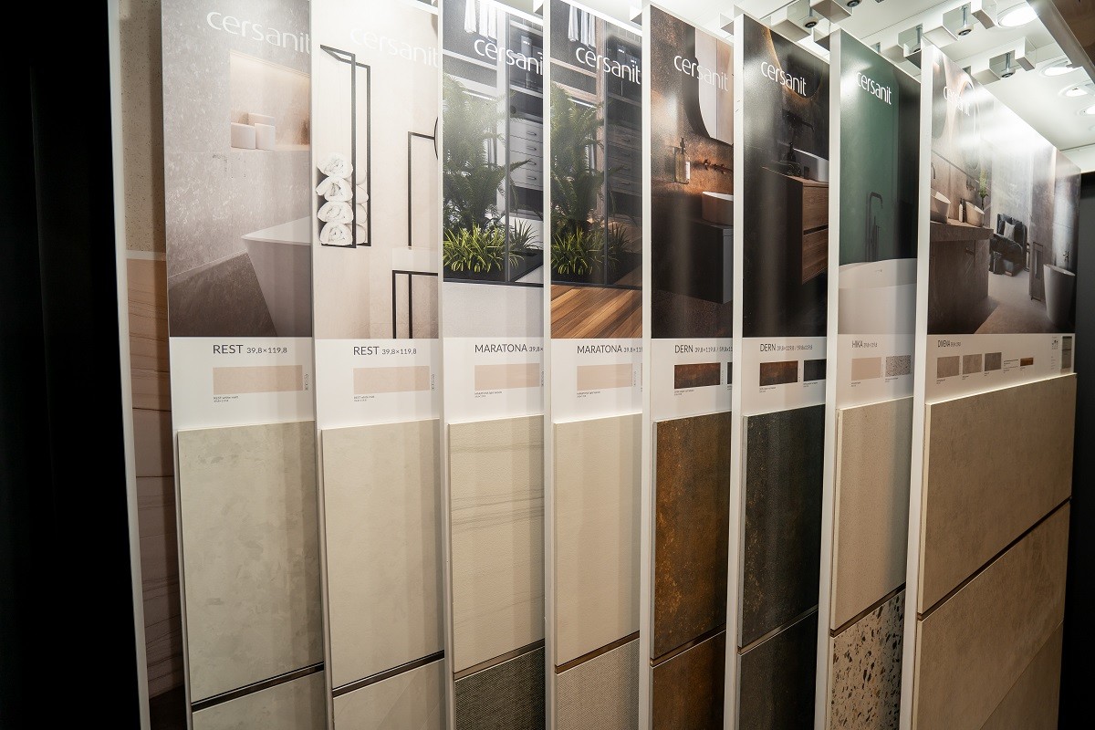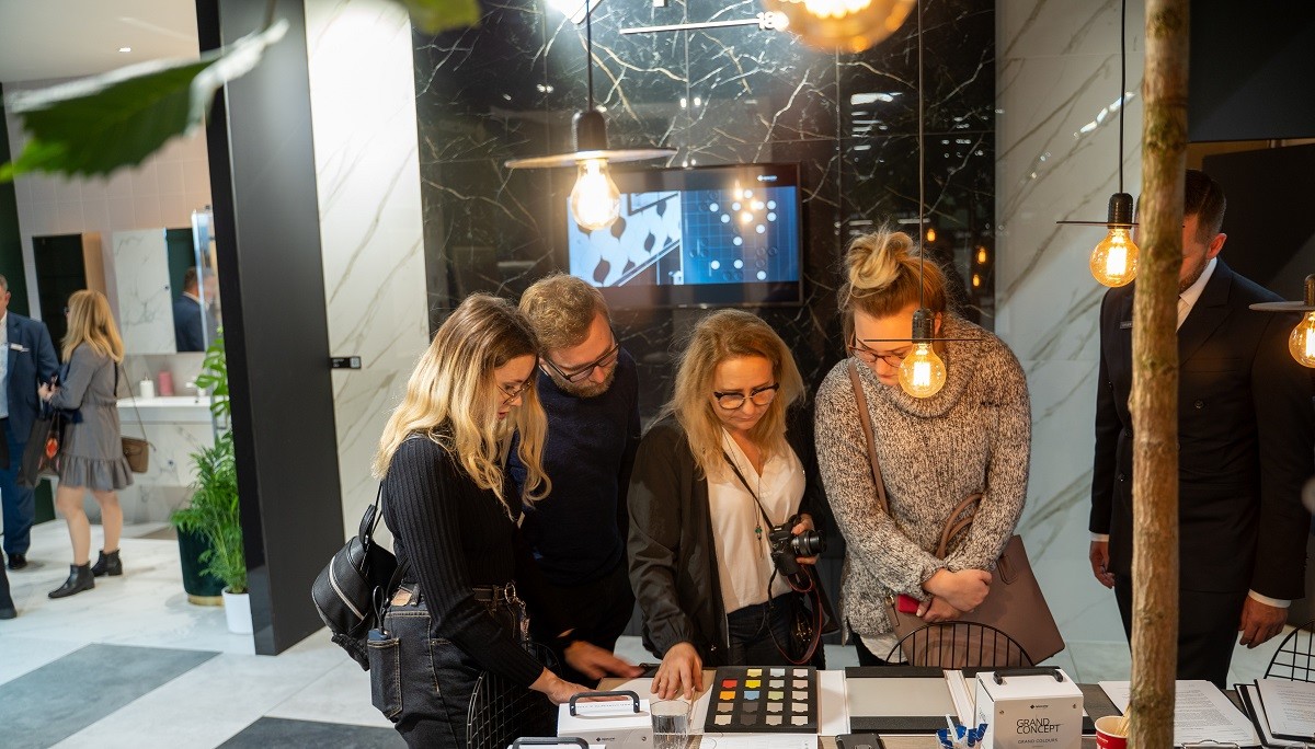 Nowoczesny dom podzielony był na kilka stref z gotowymi dedykowanymi aranżacjami. Każda z nich skierowana była do innego odbiorcy, o innych potrzebach, stylach życia i wymaganiach. W Strefie Inspiracyjnej zaprezentowane były najnowsze kolekcje marek Cersanit i Opoczno. W Strefie Spotkań zaaranżowanej płytkami serii GRAND CONCEPT marki Opoczno, w tym wyjątkową CALACATTA GOLD – z unikalnym złotym użyłowieniem, przez cały czas toczyły się intensywne rozmowy z naszymi potencjalnymi klientami i partnerami biznesowymi.