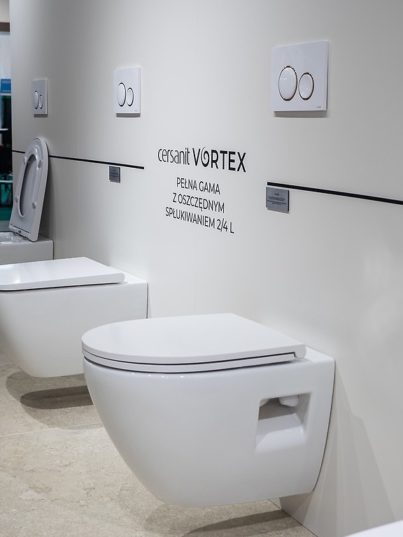 Największe zainteresowanie wzbudził system CERSANIT VORTEX – nowoczesne, wirowe spłukiwanie toalet, które jest nie tylko wyjątkowo ciche, ale także znacząco ogranicza zużycie wody. Innowacyjna technologia zapewnia maksymalną skuteczność czyszczenia, co było głównym powodem przyznania Medalu Targowego.