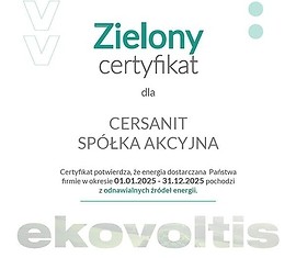 Nasze działania potwierdzają certyfikaty zgodne z międzynarodowymi normami. ISO 14001 potwierdza skuteczność naszego systemu zarządzania środowiskowego, a ISO 9001 – wysoką jakość, podejście procesowe i orientację na klienta. Ukończyliśmy też certyfikację ISO 17889, która ocenia wpływ produktów ceramicznych na środowisko, społeczeństwo i gospodarkę w całym cyklu życia.